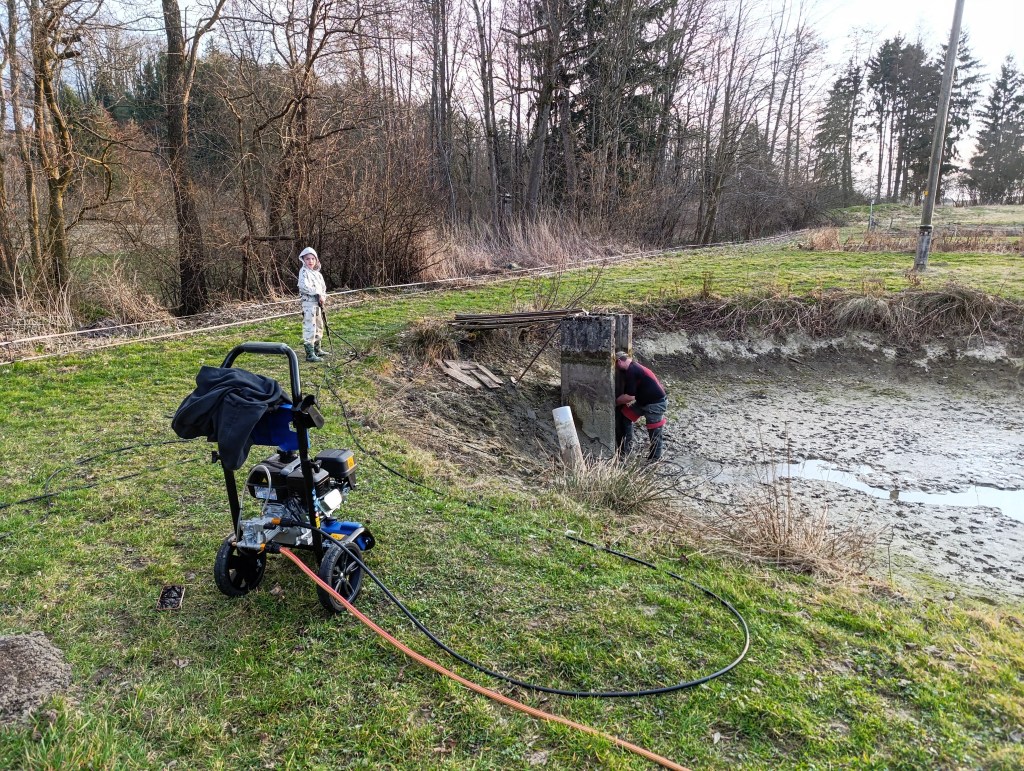Wir reinigen Zulauf und Ablauf Ihrer Teiche mit einem Hochdruckreiniger und spezieller „Ratte“, die Ablagerungen in den Rohren verhindert. So wird ein gleichmäßiger Wasserfluss erhalten und Verstopfungen sowie Durchflussverluste werden vermieden.